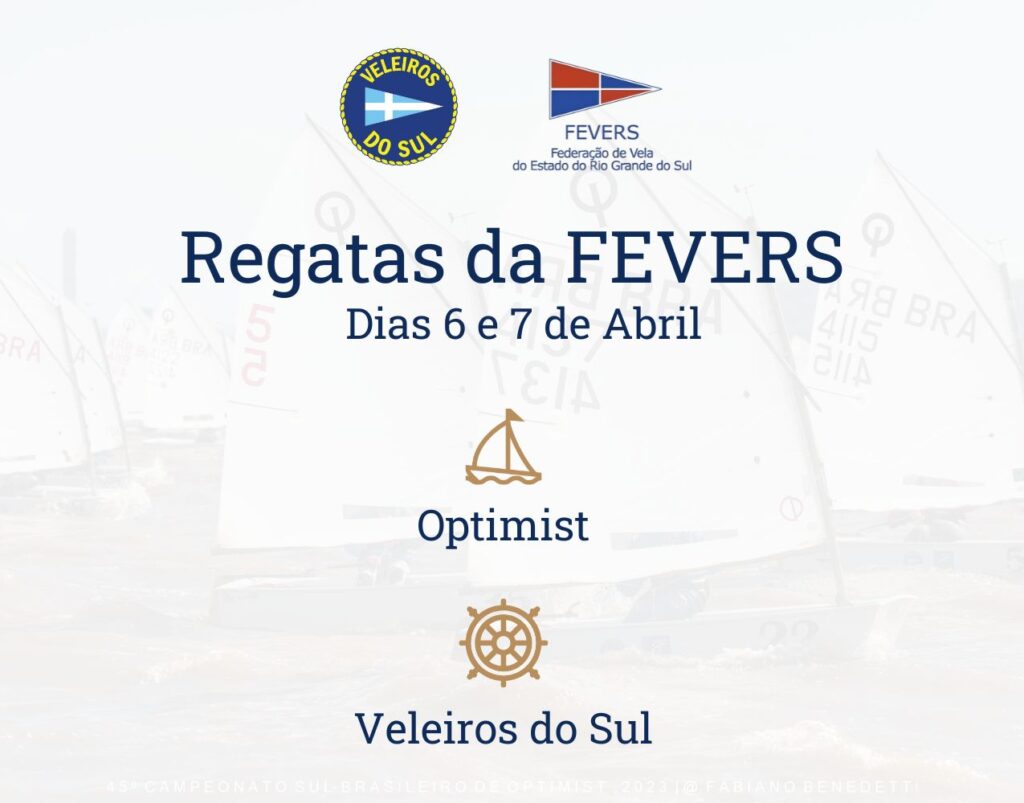 Ventos fortes aparecem nas regatas da FEVERS para a classe Optimist neste sábado (6). Confira