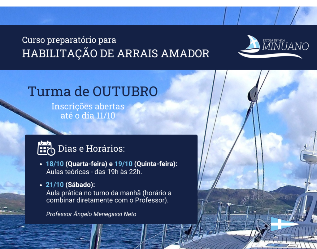 Não perca! Curso preparatório para habilitação de Arrais Amador – Turma de Outubro – segue com inscrições abertas!