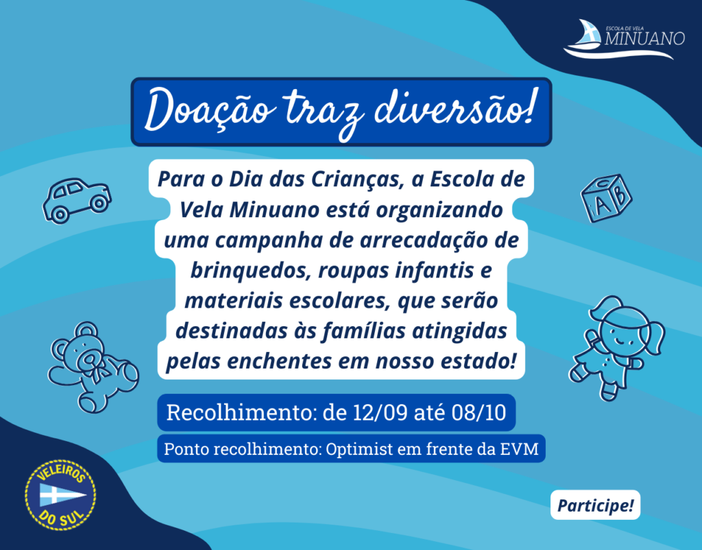Doação traz diversão: uma campanha solidária da Escola de Vela Minuano!