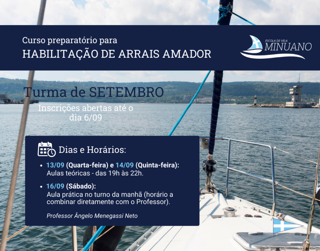 Inscrições seguem abertas para o curso preparatório para habilitação de Arrais Amador – Turma de Setembro. Não perca!